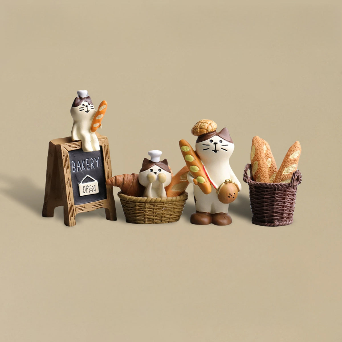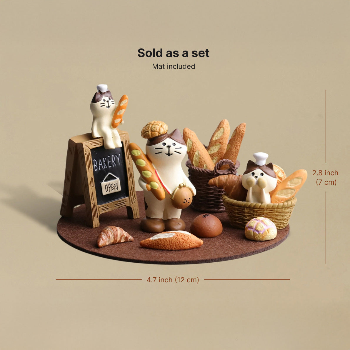 This ceramic set features a trio of adorable feline bakers surrounded by fresh-baked breads and pastries, from baguettes to melon pan. Each piece is carefully sculpted with tiny details, from the cat chef’s hat to the mini chalkboard that says “BAKERY OPEN.”