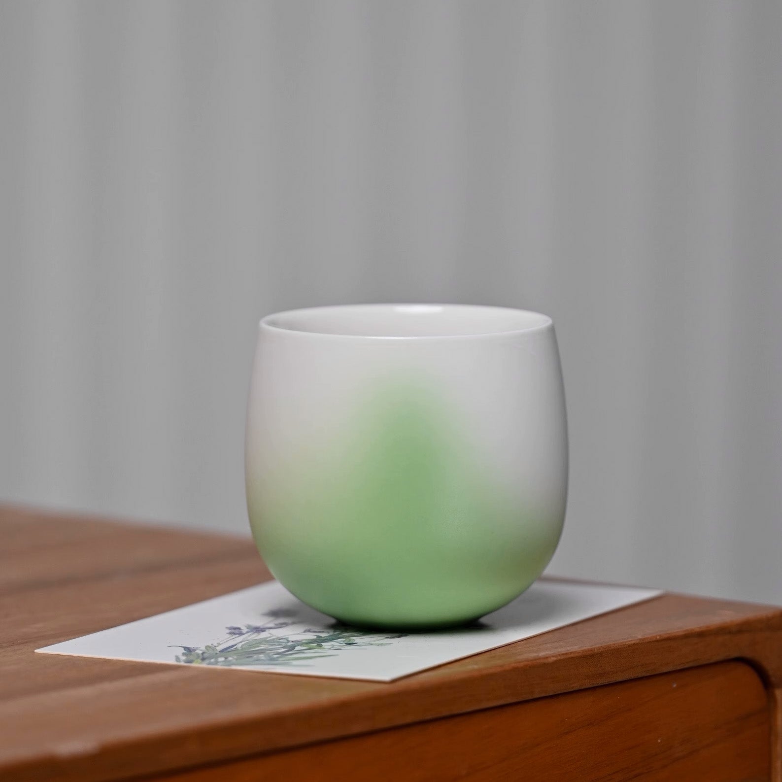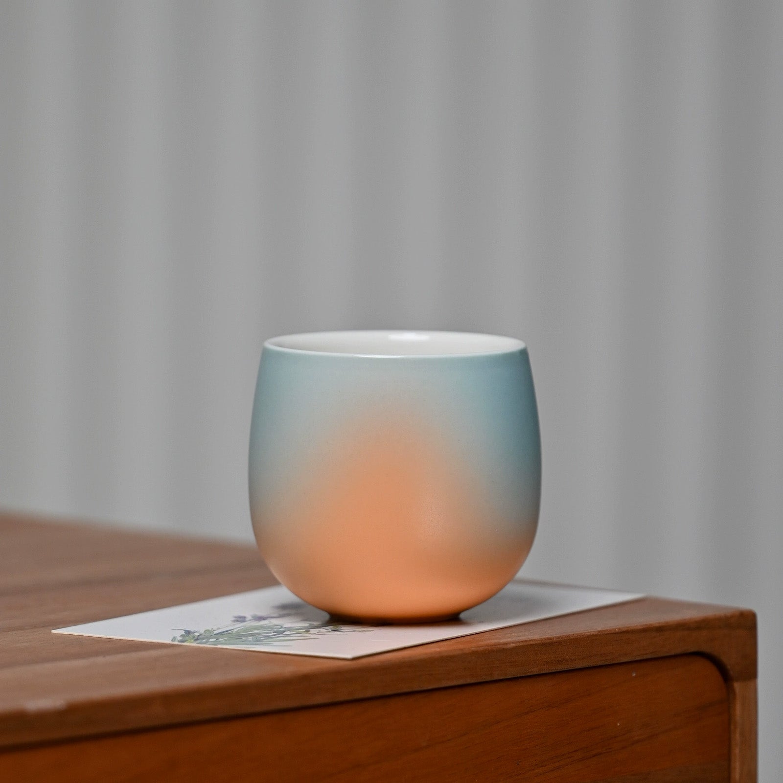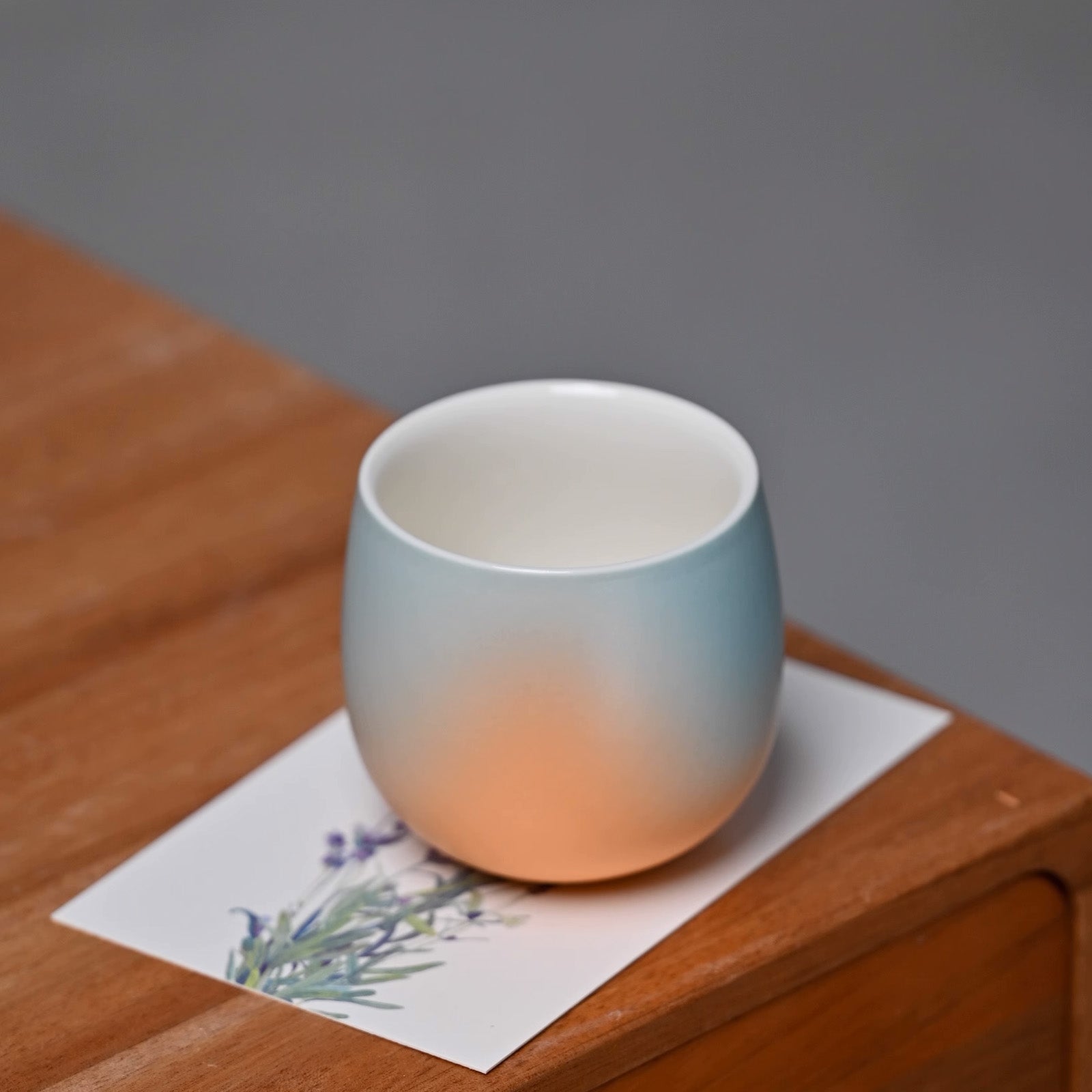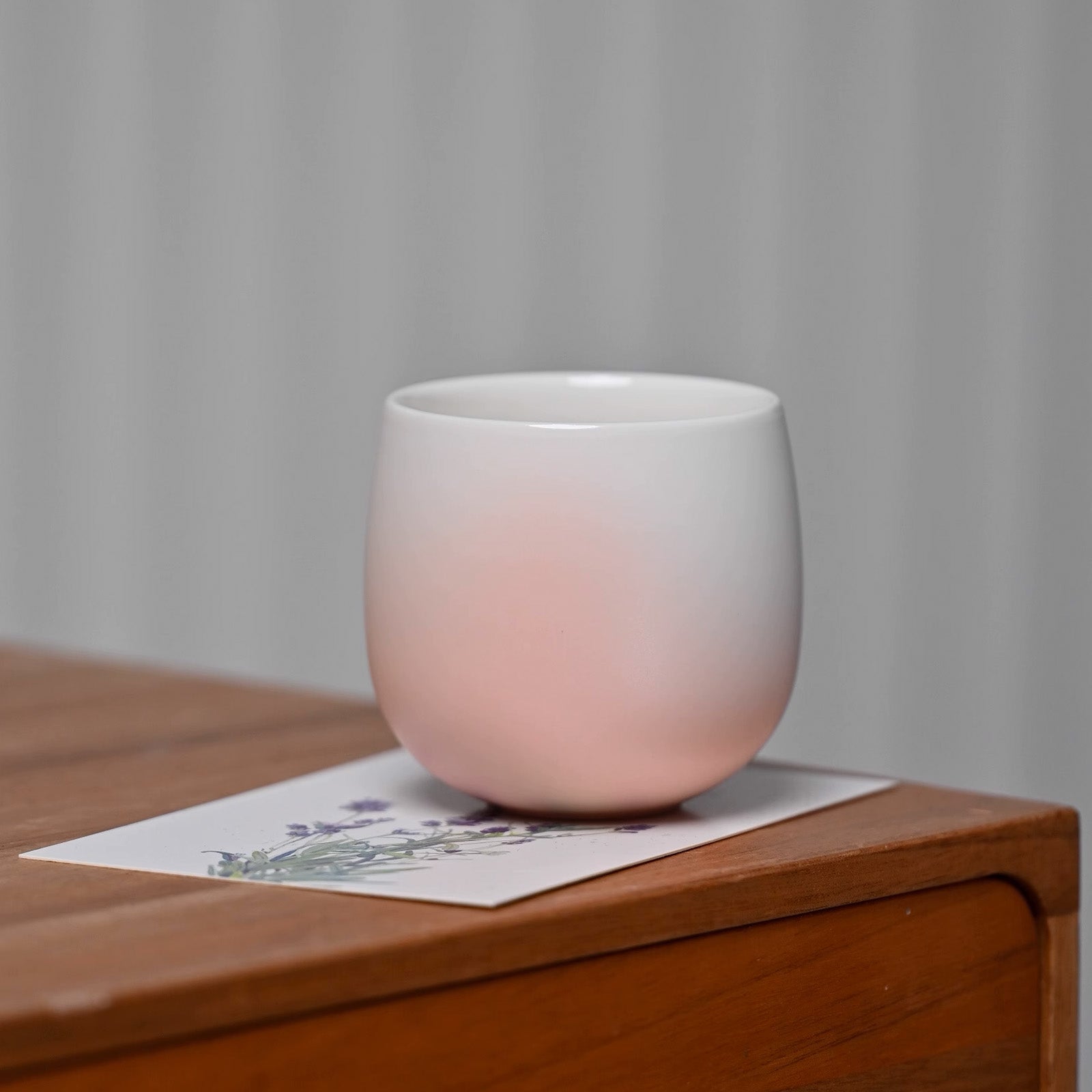 Each cup is hand spray-glazed with soft, flowing gradients inspired by elements of nature, from morning dew to cherry petals.