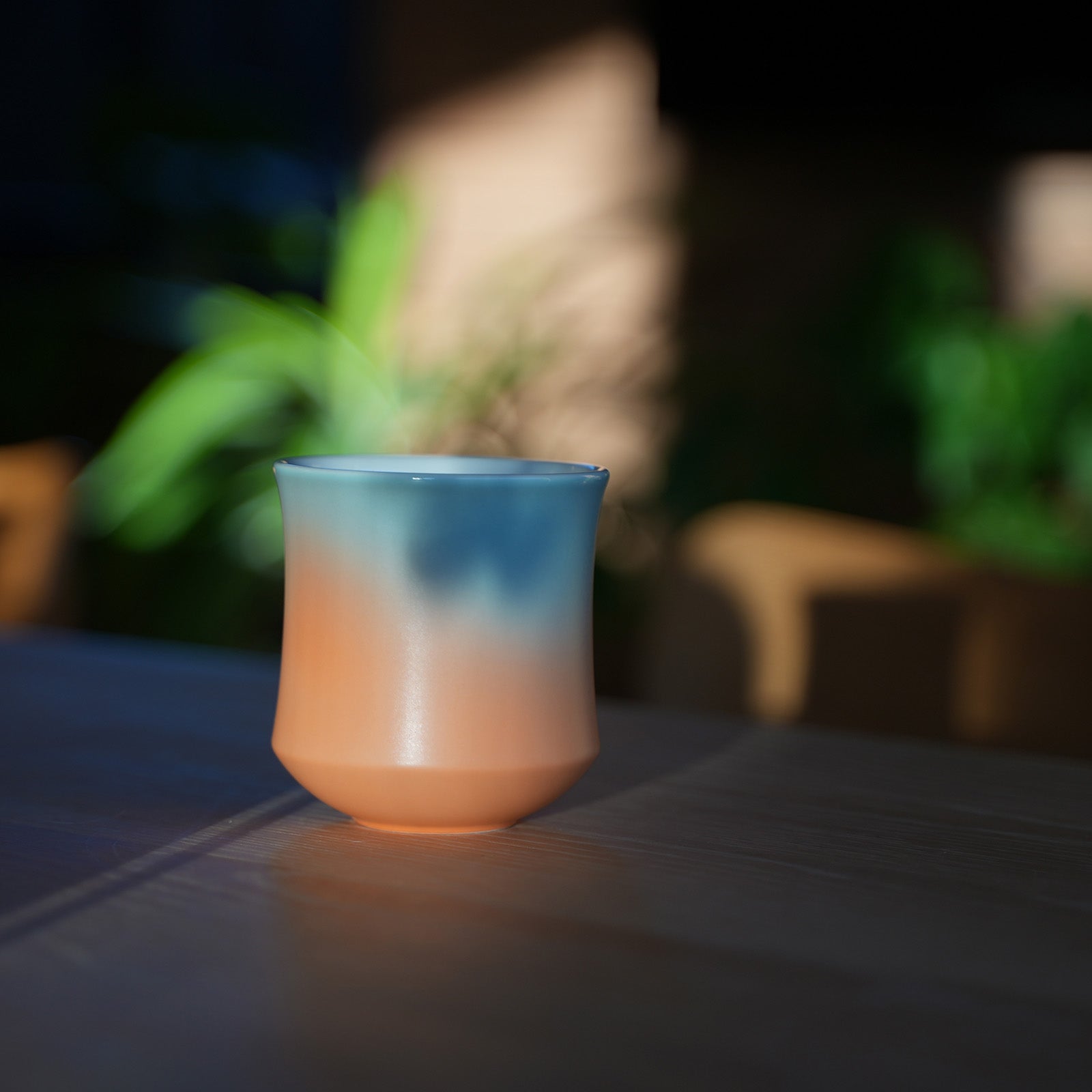Each cup is hand spray-glazed with soft, flowing gradients inspired by elements of nature, from early dusk to summer beach.