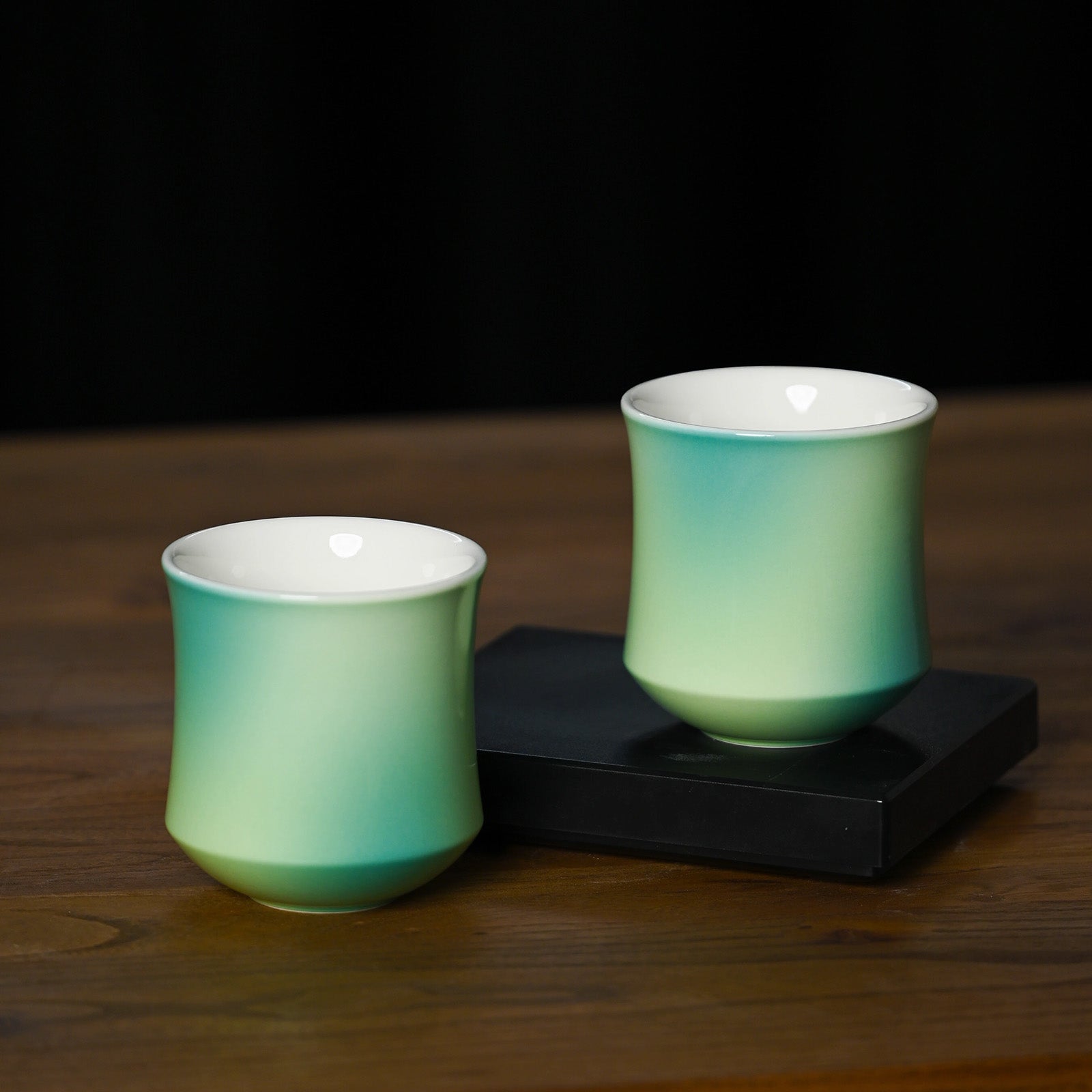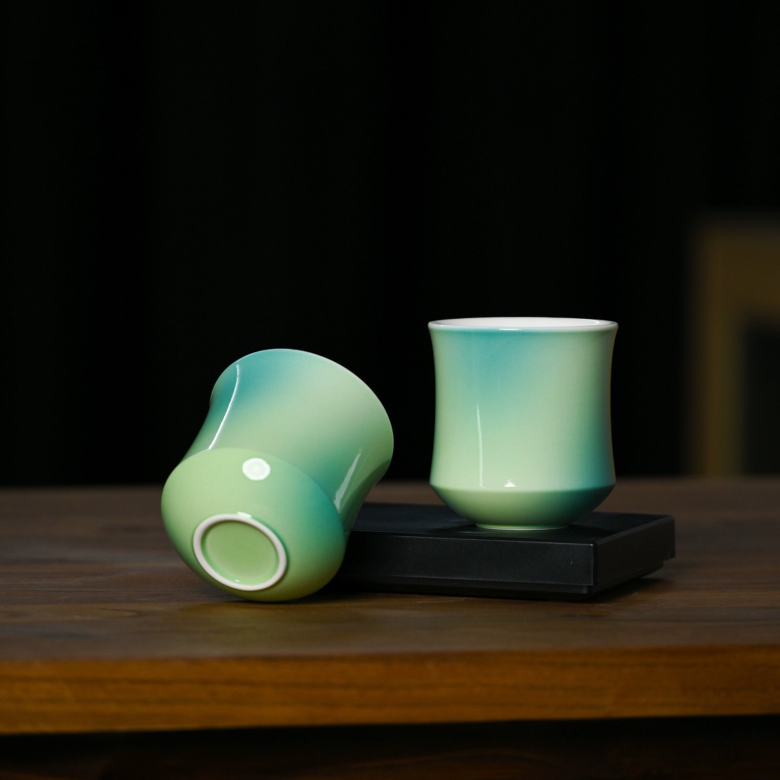 Jue also has a sharp eye for color. Each gradient is inspired by nature, such as morning skies, bamboo groves, summer lotuses, and spray-glazed by hand in his studio, making every piece one of a kind.