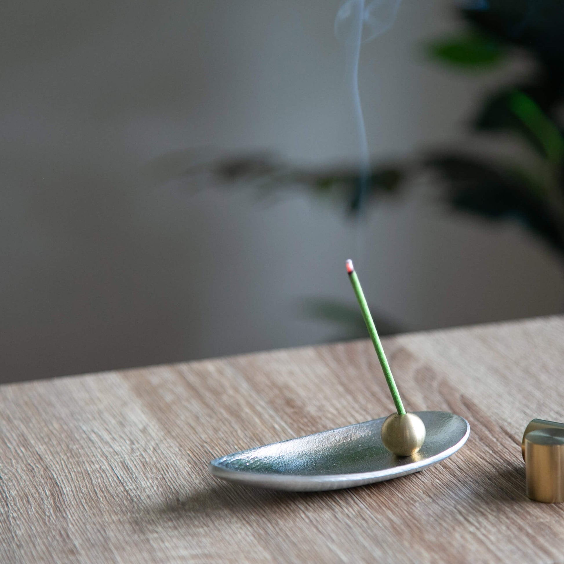 Inspired by the shape of bamboo leaves, this minimalist yet poetic incense holder is made from pure tin. Each piece is handcrafted by artisans in Takaoka, Toyama Perfecture, Japan, using traditional casting techniques.