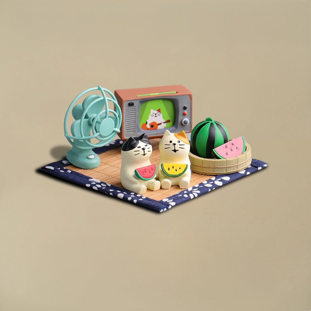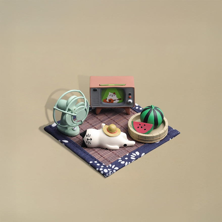 Cool breeze. Watermelon slices. This miniature set is a slice of nostalgia and calm. It is everything we dream of when it’s too hot to function — a soft fan spinning, a retro TV playing quietly in the background, and absolutely zero responsibilities.